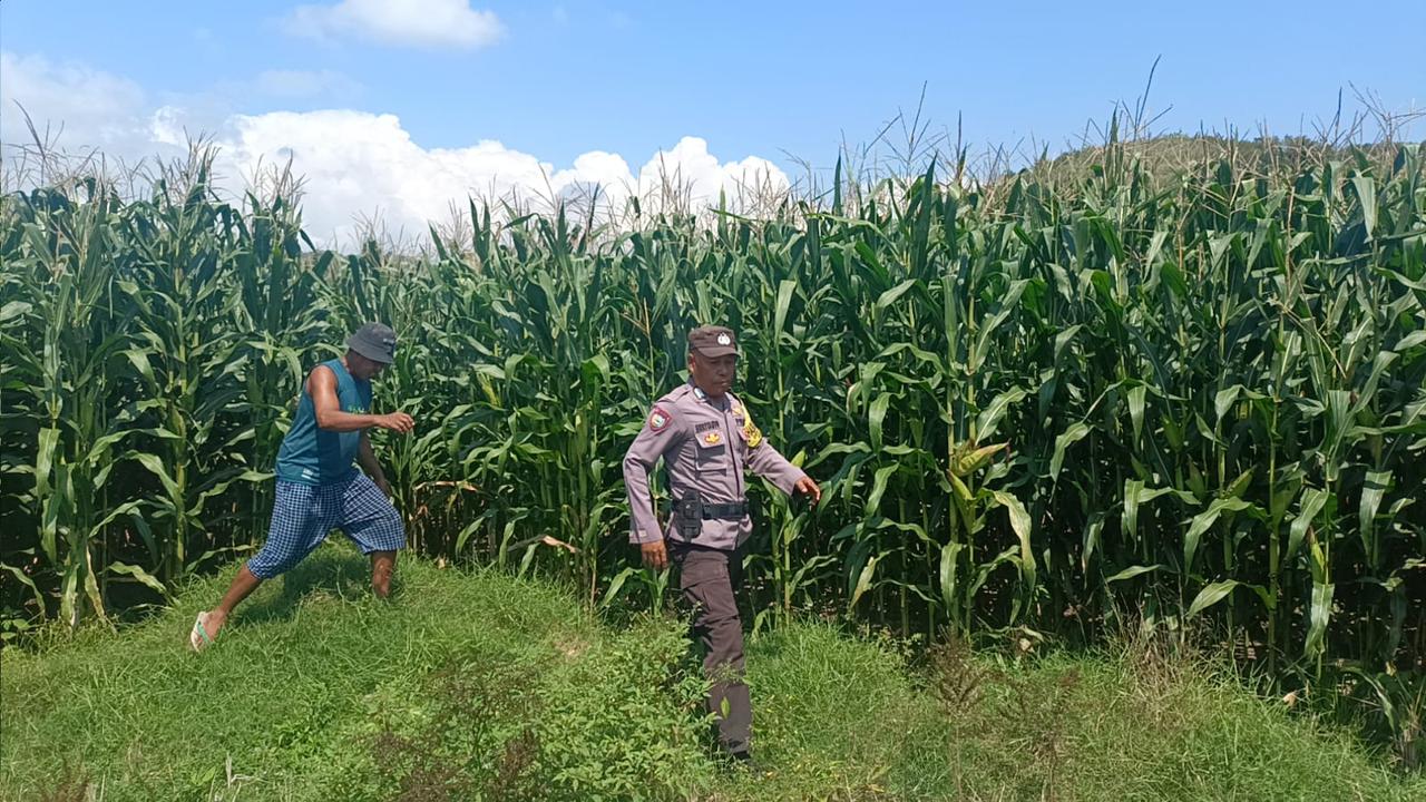 Sumbawa Besar, NTB — Bhabinkamtibmas Desa Tarusa, Kecamatan Buer, Bripka Heriyanto, melaksanakan kunjungan dan pengecekan ke lahan produktif penanaman jagung milik Bapak Buddin di lokasi Uma Orong Semerok Bawah, Dusun Tarusa Bawah pada hari Kamis, 24 Juli 2025, pukul 12.00 WITA