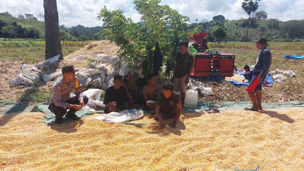 Sumbawa Barat, NTB – Dalam upaya mendukung ketahanan pangan serta meningkatkan kedekatan dengan masyarakat binaan, Bhabinkamtibmas Desa Talonang Baru melaksanakan pendampingan kegiatan panen dan penjemuran jagung tahap ke II pada Minggu, 27 Juli 2025, pukul 10.00 WITA di wilayah Desa Talonang Baru, Kecamatan Sekongkang, Kabupaten Sumbawa Barat.