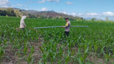 Dalam upaya mendukung program ketahanan pangan nasional, Bhabinkamtibmas Desa Ta’a Polsek Kempo BRIPKA Ibrahim melaksanakan kegiatan pemantauan langsung terhadap lahan pertanian milik warga di Dusun Permata Hijau, Desa Ta’a, pada Rabu (30/07) pukul 10.10 WITA.