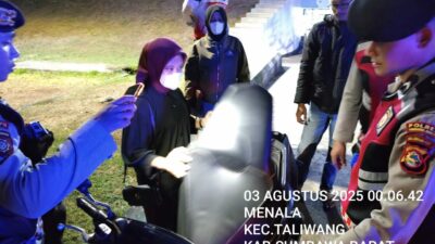 Sumbawa Barat, NTB – Dalam upaya menjaga keamanan dan ketertiban masyarakat pada malam hari, Sat Samapta Polres Sumbawa Barat melaksanakan Patroli Kegiatan Rutin Yang Ditingkatkan (KRYD) di wilayah Kelurahan Kuang, Kecamatan Taliwang, Kabupaten Sumbawa Barat, Minggu (3/8/2025) dini hari.
