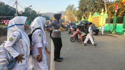 Personel Polsek Rasanae Barat Bantu Lancarkan Arus Lalu Lintas di Pagi Hari
