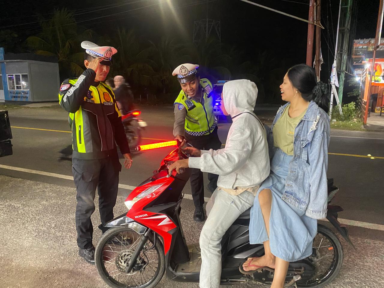 Kapolres Lombok Utara AKBP Agus Purwanta S.I.K. melalui Kasat Lantas Polres Lombok Utara, AKP Belly Rizaldi Nata Indra, S.Tr.K., S.I.K., menyampaikan bahwa kegiatan ini merupakan bentuk pelayanan Polri kepada masyarakat guna meminimalisir potensi kecelakaan lalu lintas, terutama di malam hari.