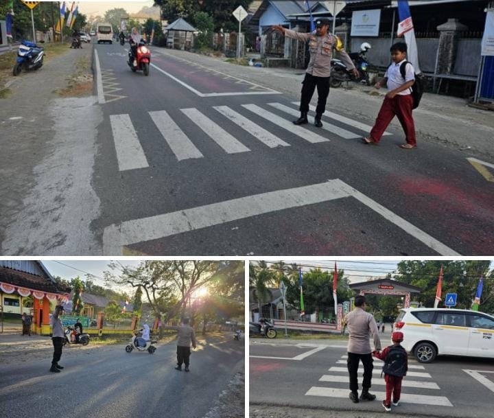 Personel Polsek Sekongkang melaksanakan Rawan Pagi di SDN 1 Sekongkang. dengan menempatkan personel di titik-titik strategis seperti persimpangan jalan dan kawasan sekolah. Petugas tidak hanya mengatur lalu lintas tetapi juga membantu anak – anak sekolah menyeberang jalan serta memberikan pelayanan dengan senyum, sapa, dan salam.