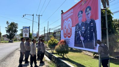 Sumbawa Barat — Meriahkan peringatan Hari Ulang Tahun ke-80 Republik Indonesia, Kapolres bersama PJU Polres Sumbawa Barat Melaksanakan Pemasangan spanduk ucapan Dirgahayu Republik Indonesia di jalan raya utama depan Mapolres. Selasa,(12/08/2025).