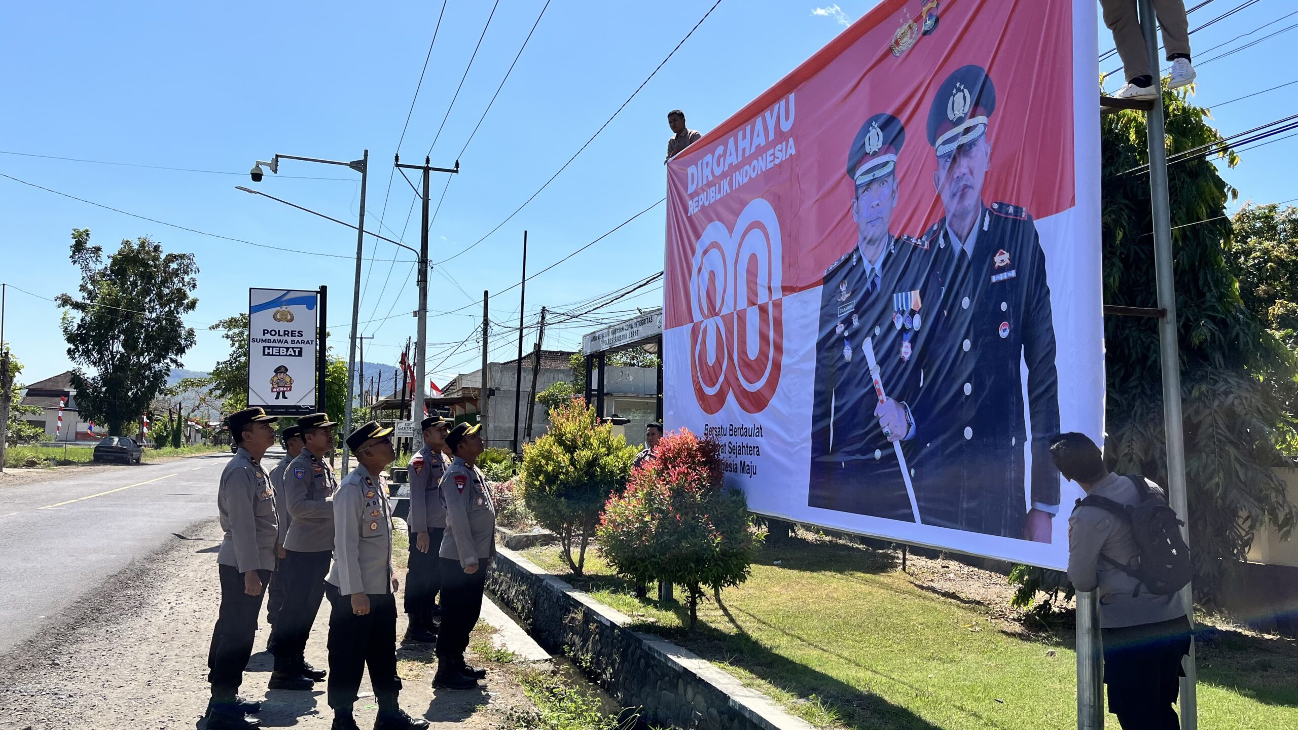 Semarakkan HUT ke-80 RI, Polres Sumbawa Barat Pasang Spanduk Ucapan
