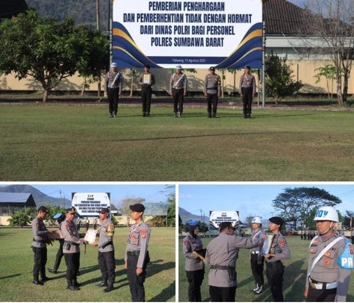 Sumbawa Barat, 15 Agustus 2025 — Polres Sumbawa Barat melaksanakan upacara Pemberhentian Tidak Dengan Hormat (PTDH) terhadap seorang anggota Polri yang melakukan pelanggaran berat, sekaligus memberikan penghargaan kepada sejumlah personel yang berprestasi.