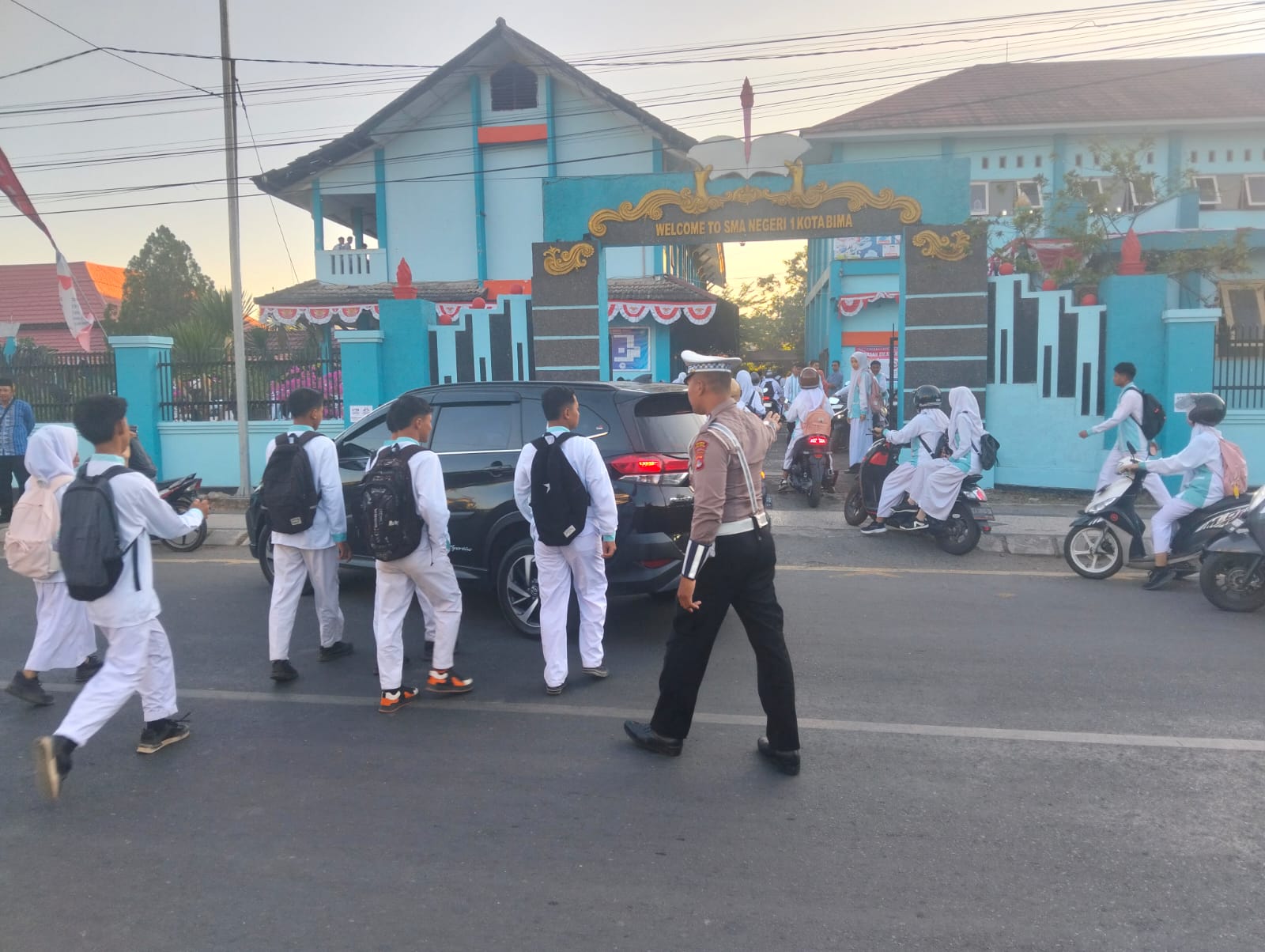 Kota Bima, NTB (15 Agustus 2025) – Satuan Lalu Lintas (Sat Lantas) Polres Bima Kota melaksanakan kegiatan Strong Point dengan membantu menyeberangkan pejalan kaki, anak-anak sekolah, dan pengguna jalan lainnya, Jumat (15/8/2025) pukul 07.00 WITA.