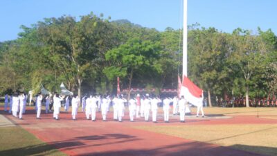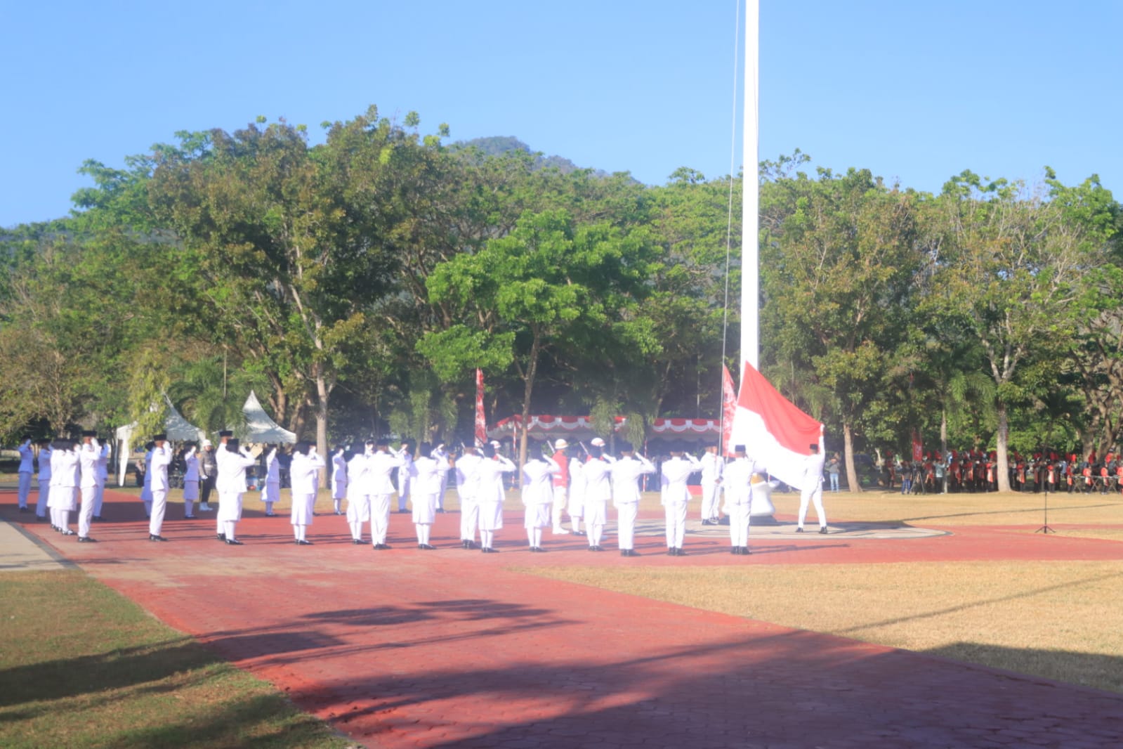 Upacara dipimpin langsung oleh Bupati Sumbawa Barat yang dimulai dengan laporan komandan upacara, diikuti penghormatan kepada Sang Saka Merah Putih, serta pembacaan teks proklamasi yang menggema mengingatkan kembali akan perjuangan para pahlawan bangsa.