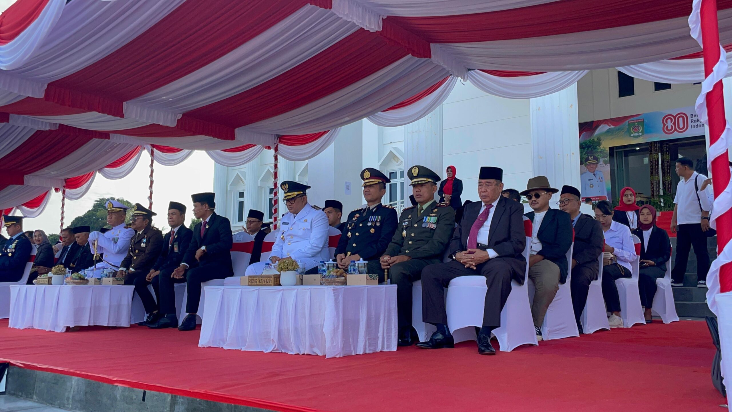 Upacara pengibaran bendera Merah Putih HUT ke-80 Republik Indonesia di Kabupaten Lombok Utara pun berlangsung aman, lancar, dan penuh semangat kebangsaan.