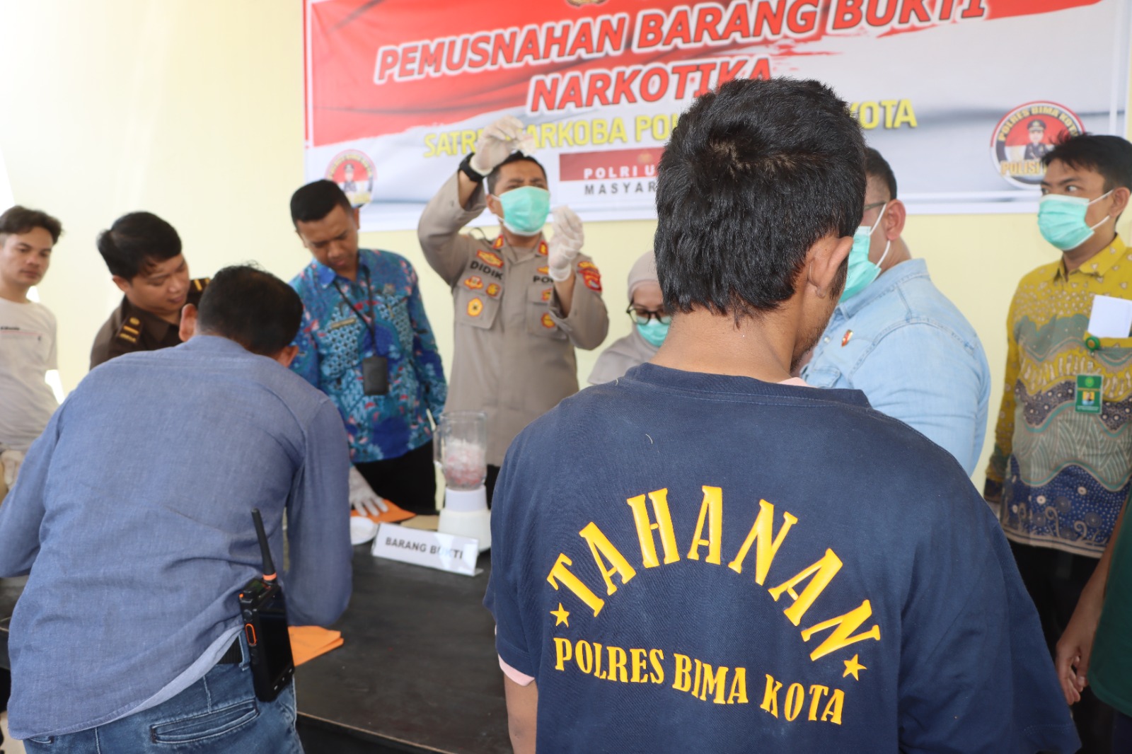 Dalam prosesnya, barang bukti sabu dimusnahkan dengan cara diblender, dicampur deterjen, lalu dibuang ke dalam lubang tanah hingga tidak dapat digunakan kembali. Proses ini dilakukan secara transparan sebagai bentuk komitmen Polres Bima Kota dalam memberantas narkoba serta memberikan jaminan akuntabilitas kepada masyarakat.
