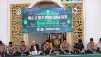 Lombok Utara – Polres Lombok Utara menggelar peringatan Maulid Nabi Muhammad SAW dengan tema “Dengan Meneladani Akhlak Rasulullah SAW, Kita Wujudkan Polri Presisi Guna Mendukung Asta Cita”, bertempat di Masjid Bhayangkara Polres Lombok Utara, Jumat, 5/9/2025.
