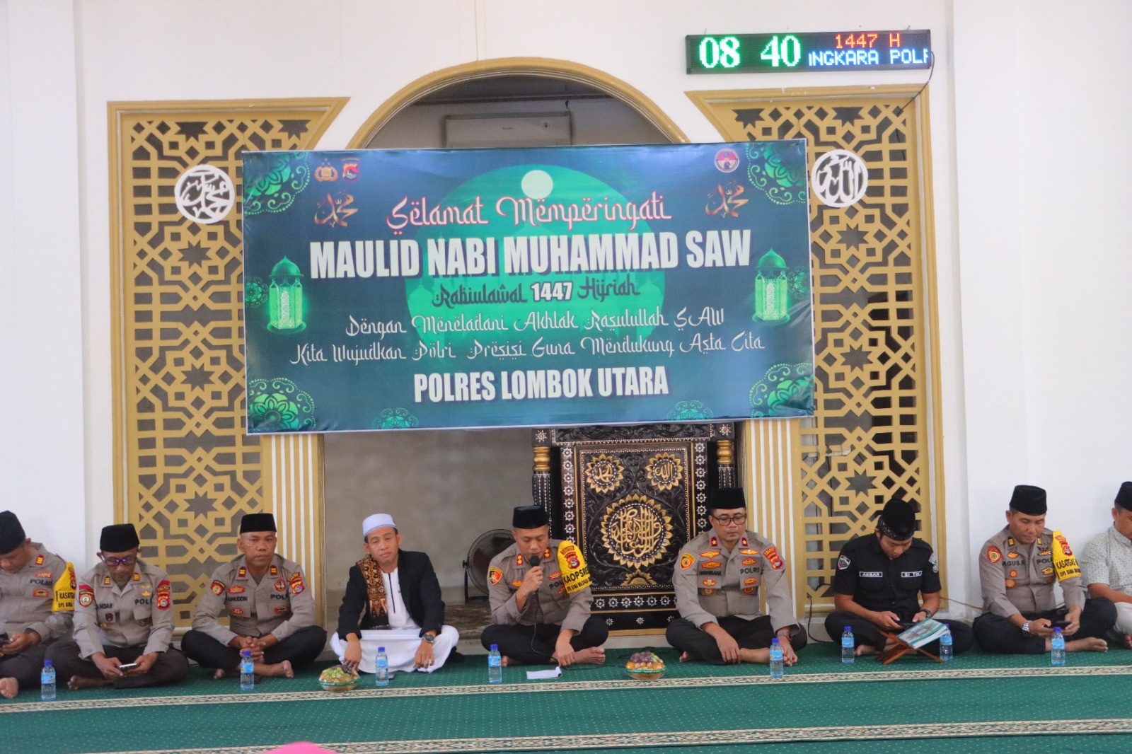 Kapolres juga mengajak seluruh jajaran untuk menjaga ukhuwah Islamiyah serta merawat kebersamaan di tengah perbedaan yang ada. “Semangat persatuan yang diwariskan Rasulullah harus kita jaga demi terwujudnya Lombok Utara yang aman, damai, dan sejahtera,” tutup Kapolres.