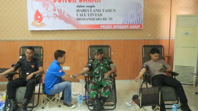 Sumbawa Barat — Dalam rangka memperingati Hari Ulang Tahun Satuan Lalu Lintas Bhayangkara ke-70, Satlantas Polres Sumbawa Barat menggelar kegiatan sosial berupa donor darah yang berlangsung di Aula Endra Darma Laksana. Sabtu,(06/09/2025).