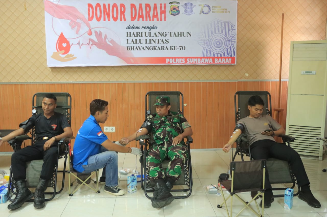 Sumbawa Barat — Dalam rangka memperingati Hari Ulang Tahun Satuan Lalu Lintas Bhayangkara ke-70, Satlantas Polres Sumbawa Barat menggelar kegiatan sosial berupa donor darah yang berlangsung di Aula Endra Darma Laksana. Sabtu,(06/09/2025).