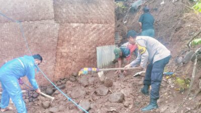 Bhabinkamtibmas Desa Mantun Bersama Warga Gotong Royong Bantu Warga Binaan Terdampak Korban Longsor