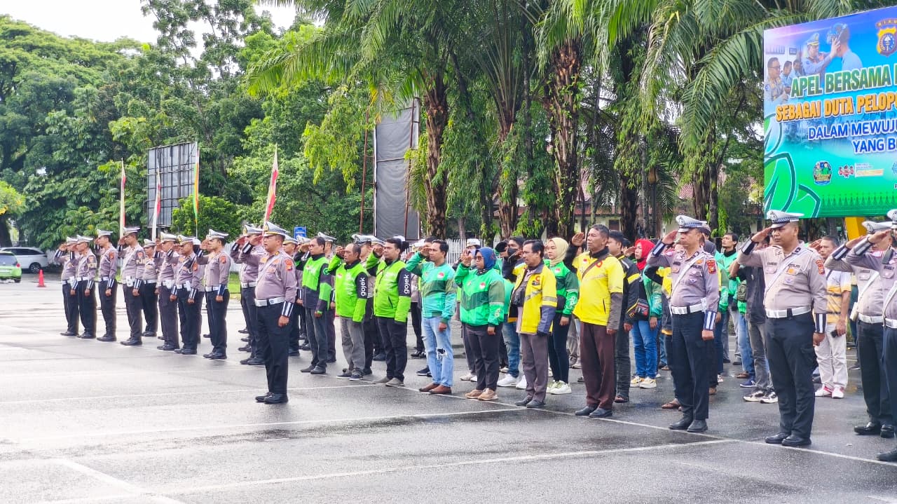 PEKANBARU – Direktorat Lalu Lintas (Ditlantas) Polda Riau mengukuhkan para pengemudi ojek online (ojol) sebagai Duta Pelopor Keselamatan Berlalu Lintas melalui Apel Bersama di halaman Samsat Kota Pekanbaru, Jalan Gadjah Mada, Kamis (11/9/2025).