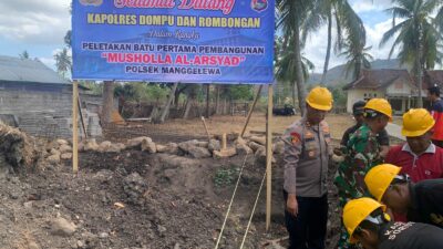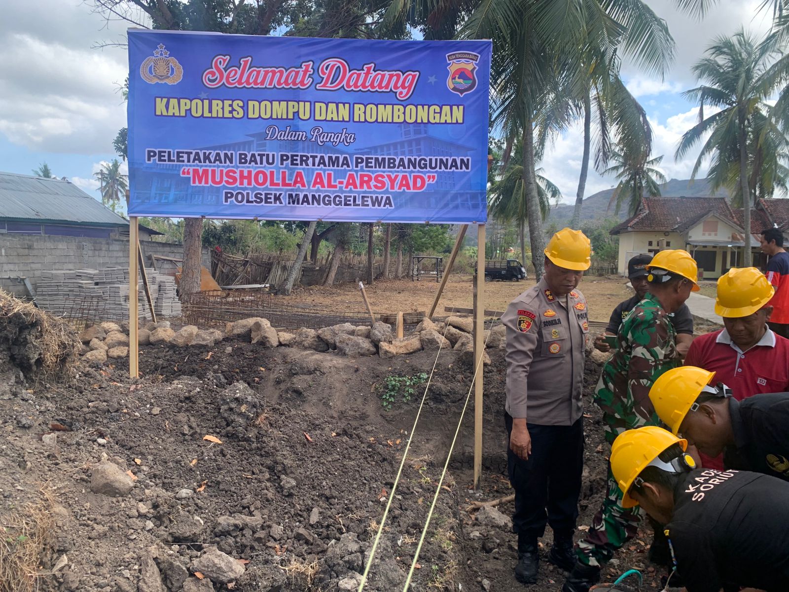 Kapolres Dompu AKBP Sodikin Fahroji Nur, S.I.K. memimpin langsung peletakan batu pertama pembangunan Musholla Al-Arsyad di Mako Polsek Manggelewa, Jumat (12/9/2025) pukul 09.00 WITA. Pembangunan rumah ibadah tersebut diharapkan menjadi sarana spiritual sekaligus mempererat hubungan sosial antara Polri dan masyarakat.