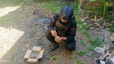 Sumbawa Besar, NTB — Warga Desa Muer, Kecamatan Plampang, Kabupaten Sumbawa, dihebohkan dengan penemuan dua benda berbentuk bulat yang diduga granat. Namun, setelah diidentifikasi oleh Tim Jibom Detasemen Gegana Brimob Sumbawa, benda seberat masing-masing 2,5 kg itu dipastikan sebagai peluru meriam kuno dan dinyatakan aman.