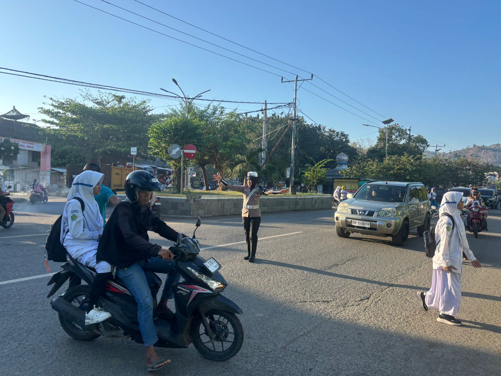 Kapolres Bima Kota AKBP Didik Putra Kuncoro, S.I.K., M.Si., melalui Kasi Humas Polres Bima Kota Ipda Baiq Fitria Ningsih menyampaikan, personel Lantas Polsek Rasanae Barat tidak hanya mengatur arus lalu lintas tetapi juga memberikan himbauan Kamseltibcarlantas (Keamanan, Keselamatan, Ketertiban, dan Kelancaran Lalu Lintas).