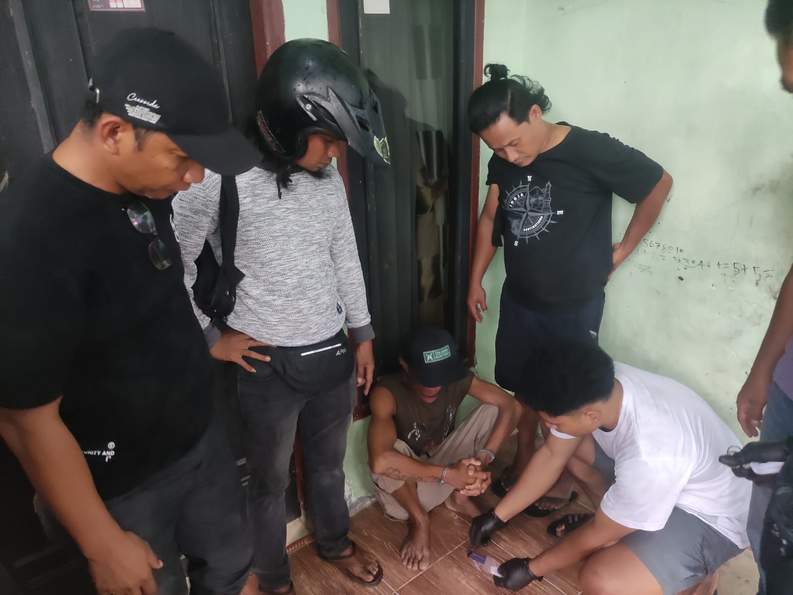 Saat tiba di lokasi, tim mendapati dua orang yang dicurigai. Namun salah satunya berhasil melarikan diri, sementara seorang lainnya berhasil diamankan. Dari hasil penggeledahan yang disaksikan dua warga setempat, tim menemukan 1 klip lepas berisi 7 klip gulung berisi kristal bening yang diduga sabu dengan berat bruto 2,43 gram dan berat netto 0,32 gram. Selain itu diamankan pula uang tunai Rp305.000 serta 1 buah korek api.