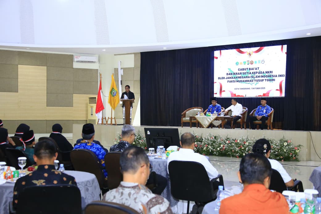 Tangerang — Bertepatan dengan peringatan Hari Kesaktian Pancasila, sebanyak 58 orang jamaah eks anggota kelompok Negara Islam Indonesia (NII) faksi MYT (Muhamad Yusuf Tohiri) menyatakan ikrar setia kepada Negara Kesatuan Republik Indonesia (NKRI) dalam sebuah acara yang berlangsung khidmat di Kantor Majelis Ulama Indonesia (MUI) Kota Tangerang, pada Rabu, 1 Oktober 2025 pukul 09.00 WIB.