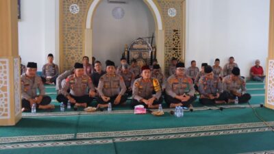 – Personel yang beragama Islam melaksanakan kegiatan di Masjid Bhayangkara Polres Lombok Utara.
