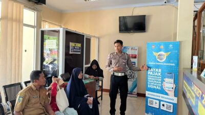 Dalam kegiatan tersebut, personel Satlantas memberikan sosialisasi mengenai tata cara pembayaran dan perpanjangan pajak kendaraan bermotor, pelayanan Buku Pemilik Kendaraan Bermotor (BPKB), serta alur pembuatan Surat Izin Mengemudi (SIM). Edukasi diberikan secara langsung dan komunikatif agar mudah dipahami masyarakat.