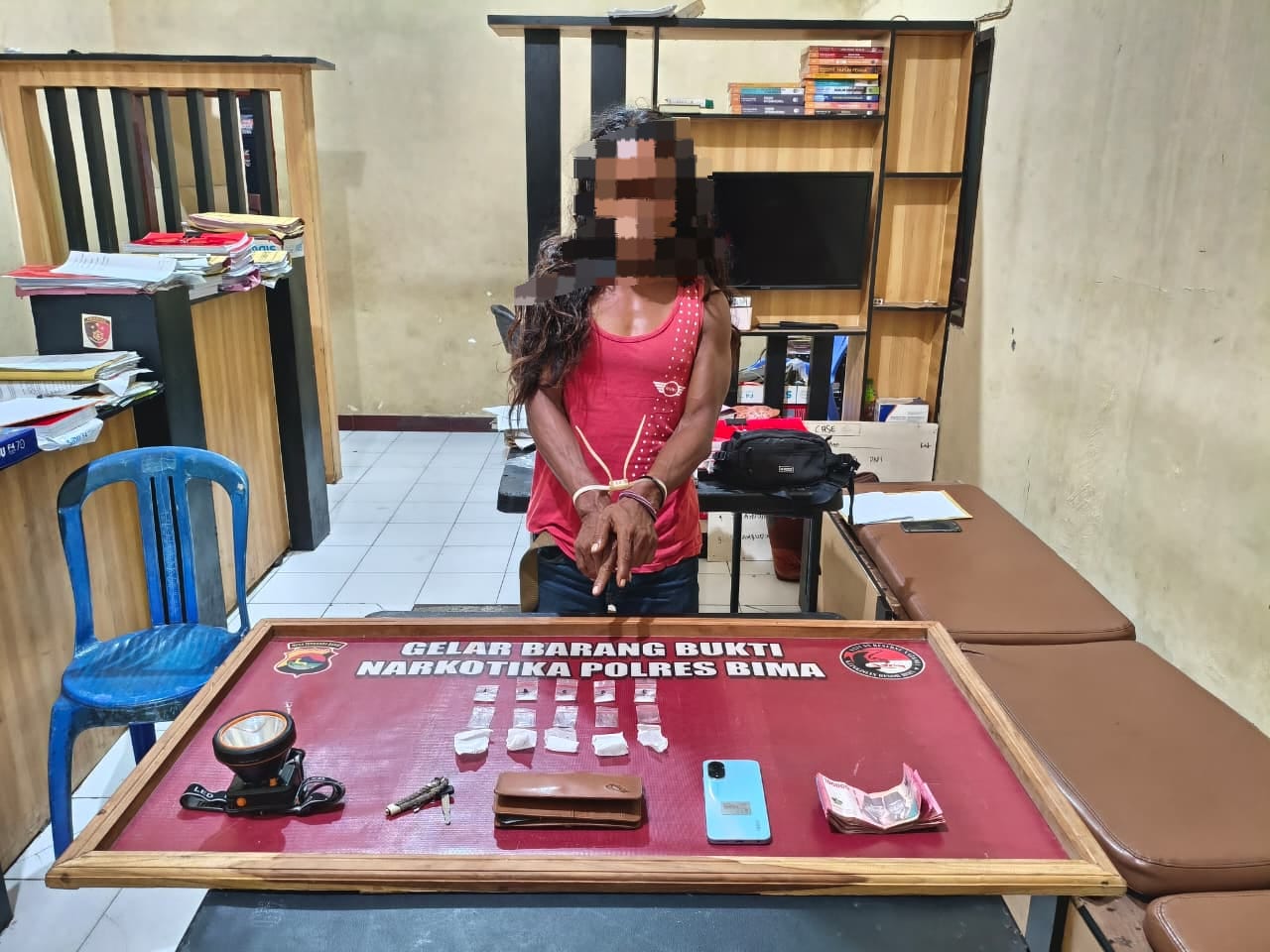 Pria berinisial AB (39) warga Desa Ndano Kecamatan Madapangga Kabupaten Bima diringkus Satresnarkoba Polres Bima Polda NTB pada Rabu 15 Oktober 2025 pukul 23.30. Wita.