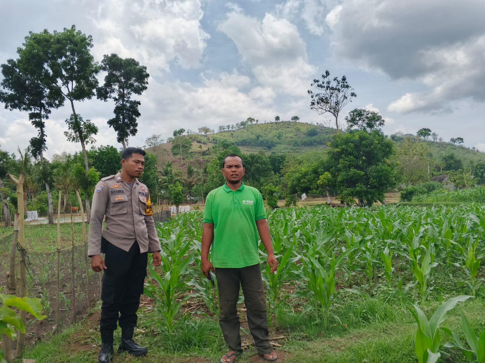 Dalam kegiatan itu, Brigadir Khairul Anwar juga melakukan pendataan terhadap lahan milik salah satu warga, Bapak Komang Windu, yang telah ditanami jagung varietas hibrida NK 2909 C di atas lahan seluas 1 hektar dengan umur tanaman sekitar 25 hari. Adapun sumber air yang digunakan dalam proses pertanian tersebut berasal dari air hujan dan sumur yang dialirkan menggunakan mesin pompa air.