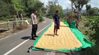 Dalam rangka mendukung program Ketahanan Pangan Nasional Menuju Indonesia Emas 2045, Bhabinkamtibmas Desa Cempi Jaya Polsek Hu’u, Bripka Ismail, melaksanakan kegiatan pemantauan terhadap warga binaannya yang tengah menjemur hasil panen jagung di So Mada Rangga, Desa Cempi Jaya, Kecamatan Hu’u, Kabupaten Dompu, pada Minggu (2/11/2025) pukul 10.00 WITA.