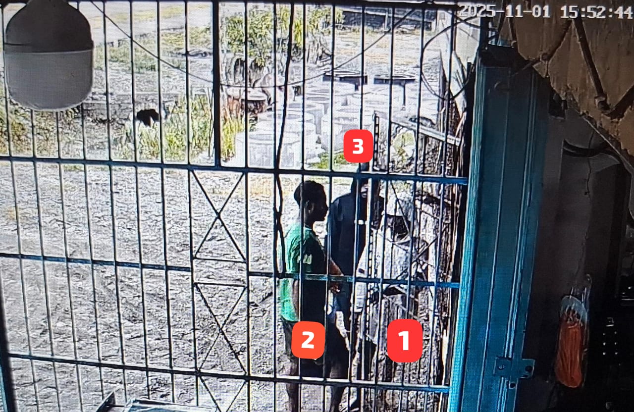 – Pelaku ketiga menggunakan jaket hoodie hitam dan celana pendek hitam dengan tinggi badan sekitar 165 cm.