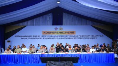 Jakarta — Kapolri Jenderal Listyo Sigit Prabowo menghadiri kegiatan pengungkapan 87 kontainer yang diduga melanggar aturan ekspor produk turunan minyak sawit mentah atau crude palm oil (CPO). Kegiatan tersebut berlangsung di Buffer Area MTI NPCT 1, Jalan Terminal Kalibaru Raya, Cilincing, Jakarta Utara, Kamis (6/11/2025).