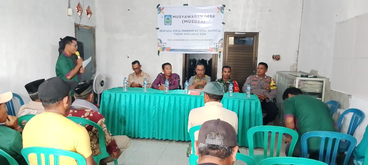 Dalam upaya mempererat sinergitas antara Polri dan pemerintah desa, Bhabinkamtibmas Desa Dorokobo Polsek Kempo, BRIPKA I Komang Juniarta, menghadiri rapat Rencana Kerja Pemerintah Desa (RKPDes) Tahun Anggaran 2026 yang digelar di Aula Kantor Desa Dorokobo, Kecamatan Kempo, Kabupaten Dompu, Kamis (6/11/2025).