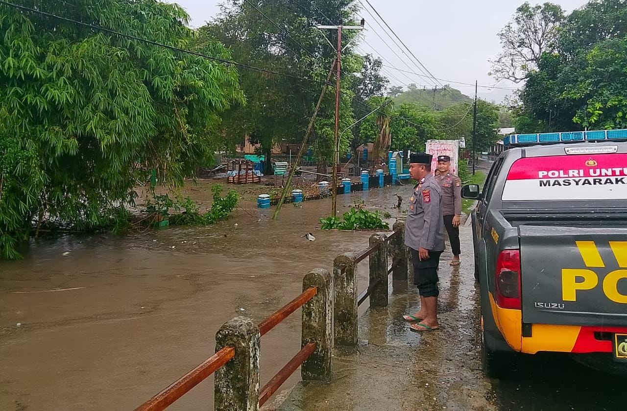 Hujan dan Angin Kencang, Puluhan Rumah di Tiga Desa di Wilayah Kecamatan Madapangga Teredam Banjir Polsek Madapangga Bantu Warga