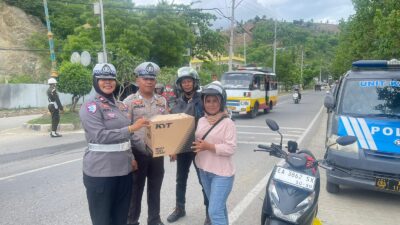Dalam kegiatan tersebut, petugas memberikan edukasi keselamatan berkendara, mulai dari pentingnya mematuhi rambu-rambu lalu lintas, penggunaan helm berstandar SNI, hingga upaya menjaga keselamatan diri dan pengguna jalan lain.