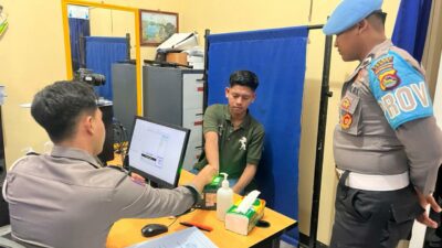 Dalam kegiatan tersebut, personel Propam melakukan pemantauan langsung terhadap alur pelayanan SIM, mulai dari proses administrasi, perekaman biometrik, hingga proses verifikasi oleh petugas, sebagaimana terlihat dalam dokumentasi kegiatan.
