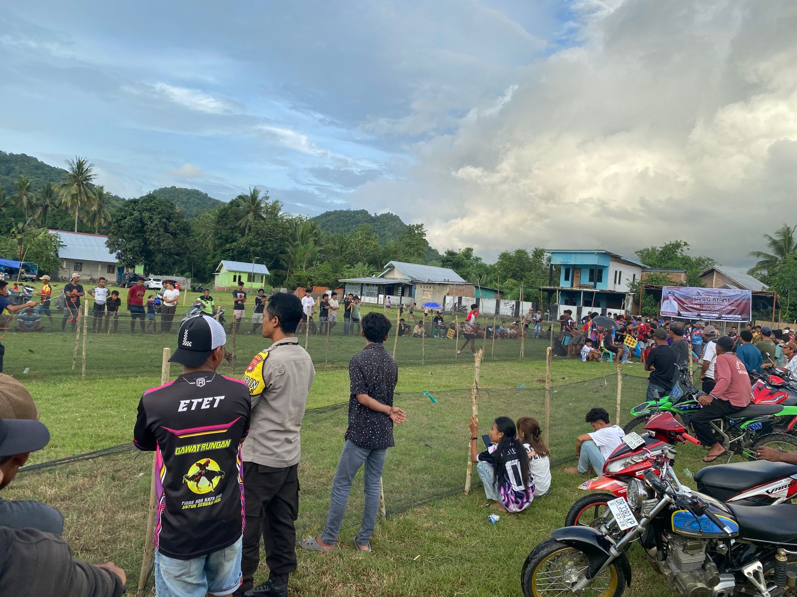 disamping itu Bhabinkamtibmas desa sapugara bree juga mengajak seluruh peserta untuk menjunjung tinggi sportivitas dan bersama-sama menjaga keamanan selama kegiatan berlangsung.