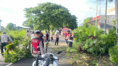 ‎‎‎Lombok Tengah (NTB) – Polres Lombok Tengah bertindak cepat evakuasi pohon tumbang yang menghalangi Jalan di Simpang Empat Tiga Dara Kecamatan Praya.