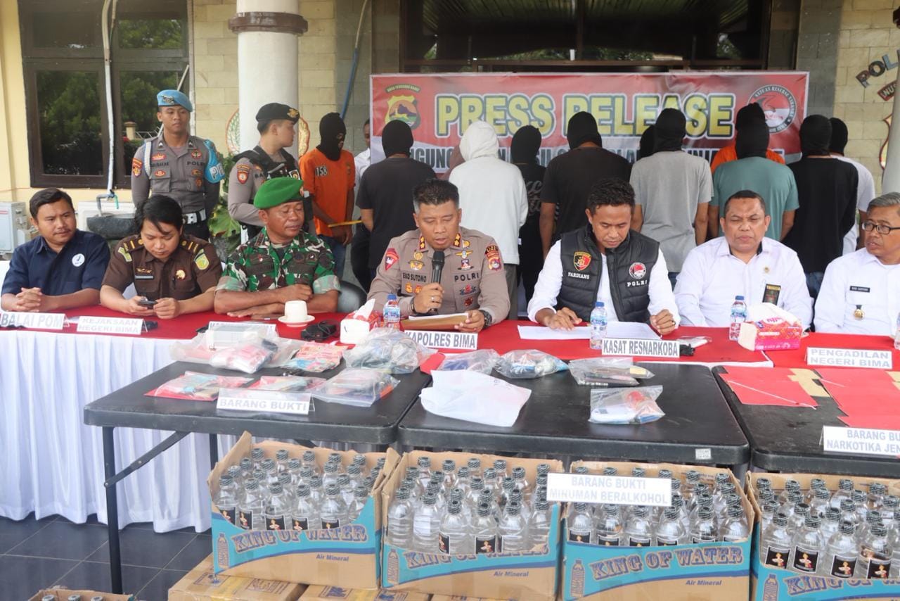Menjelang Nataru Polres Bima ungkap hasil operasi Antik dan pemusnahan BB Shabu dan Miras.