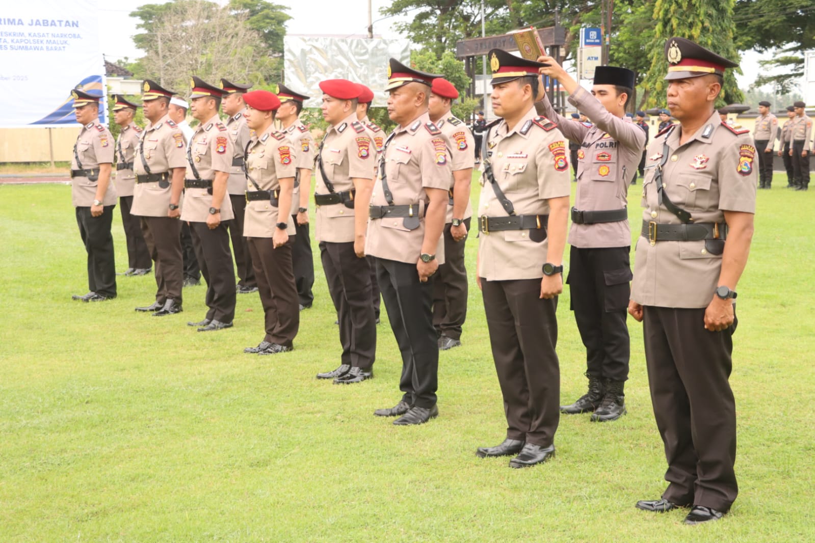 Pejabat yang melaksanakan serah terima jabatan meliputi Wakapolres, Kabag Ops, Kasat Reskrim, Kasat Narkoba, Kasat Samapta, Kasat Binmas, Kapolsek Maluk, dan Kapolsek Seteluk. Upacara dihadiri oleh para Pejabat Utama Polres, Kapolsek jajaran, Perwira, Bintara, ASN Polri, serta Bhayangkari.