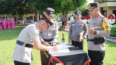 Kepolisan Resor Bima Polda NTB menggelar upacara serah terima dan pengambilan sumpah jabatan serta penandatanganan pakta Integritas lima