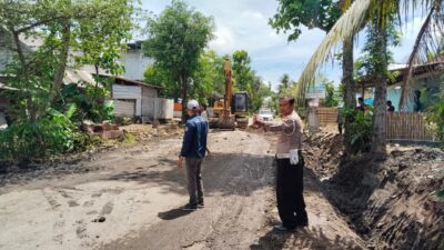 Lombok Tengah – Polsek Praya Barat, Polres Lombok Tengah, melaksanakan pengamanan dan pengawalan kegiatan pengaspalan serta pengerjaan drainase di Jalan