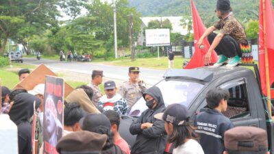 Sumbawa Barat – Polres Sumbawa Barat beri pelayanan pengamanan dalam penyampaian pendapat di muka umum yang dilakukan oleh Front Pemuda