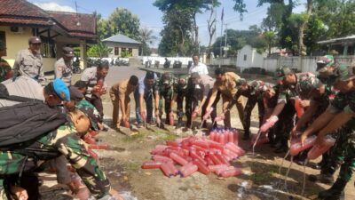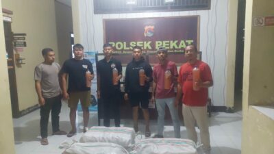 Sebagai upaya menciptakan lingkungan yang aman dan kondusif, Polsek Pekat melaksanakan kegiatan pemusnahan 150 botol minuman keras jenis tuak hasil