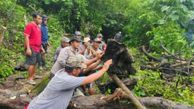 Sumbawa Barat – Bhabinkamtibmas Desa Sekongkang Atas, Brigadir Andrea Alfi Pangestu, bersama sejumlah pihak terkait melaksanakan kegiatan gotong royong untuk