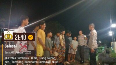 Sumbawa Besar –NTB, Personel piket Polsek Plampang, jajaran Polres Sumbawa, melaksanakan patroli malam untuk menjaga situasi keamanan dan ketertiban di